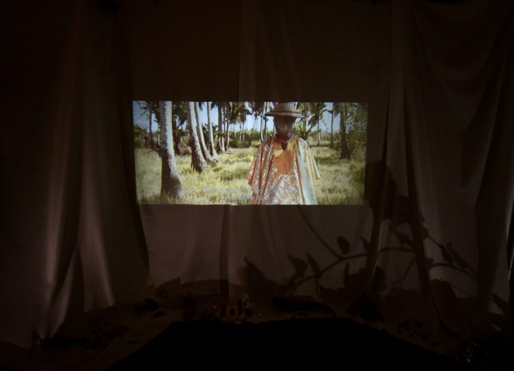 The work is a play on performance, synthesising styles from a range of geographies, including references of Yoruba dance, songs and proverbs; contemporary electronic music; Ingmar Bergman’s “The Seventh Seal”; Hector Berlioz’s “Symphonie Fantastique”; and the work of Marina Abramovic.